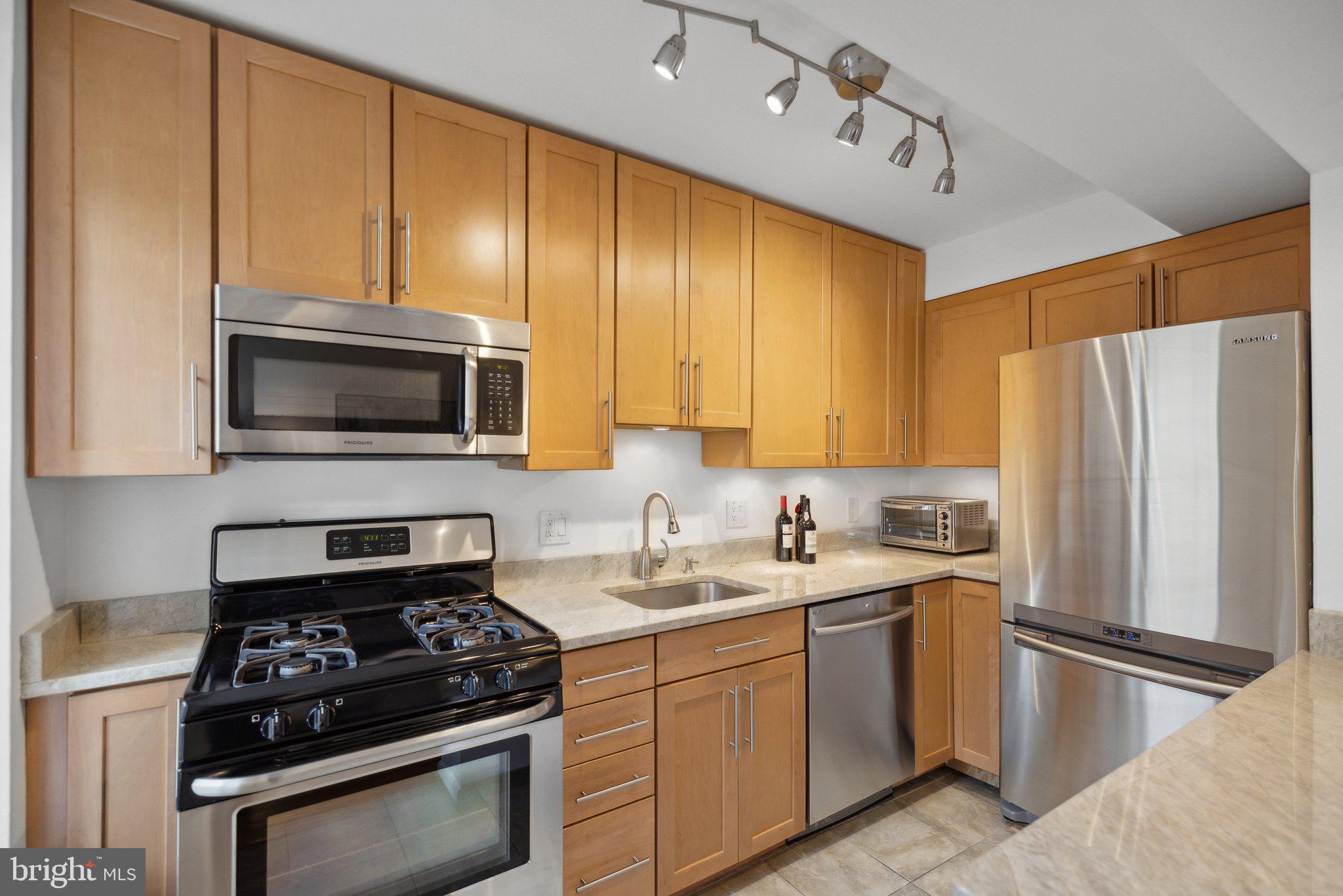 Gas Range, Gas Oven, Gas Water Heater, Washer, Refrigerator, Stainless Steel Appliance(s), Washer/Dryer Stacked, Disposal, Dishwasher, Microwave, Dryer