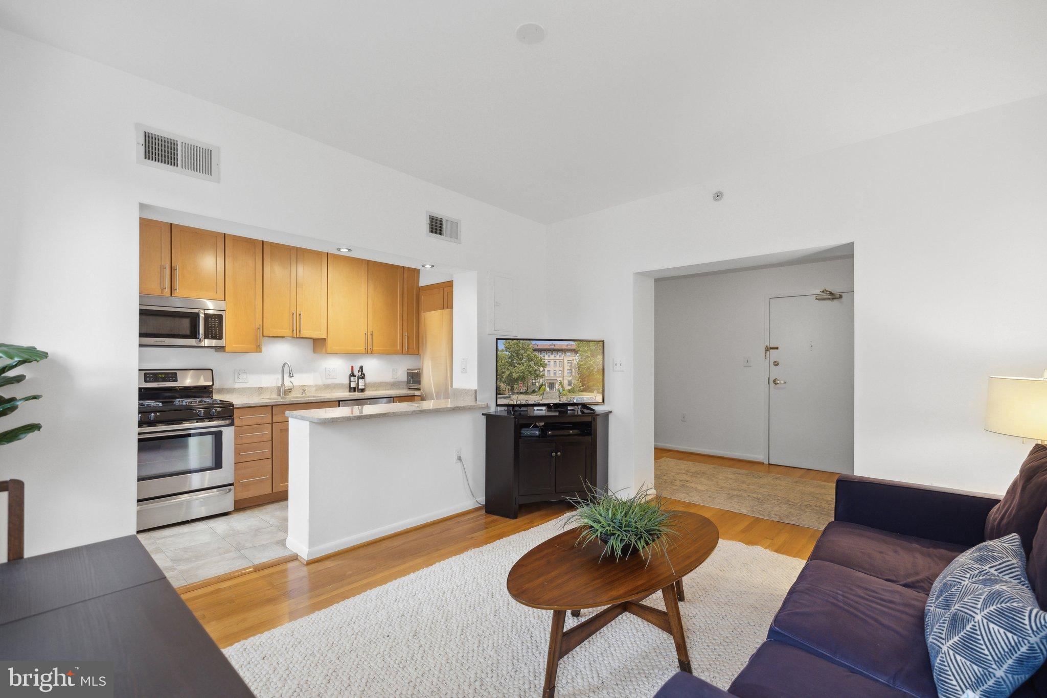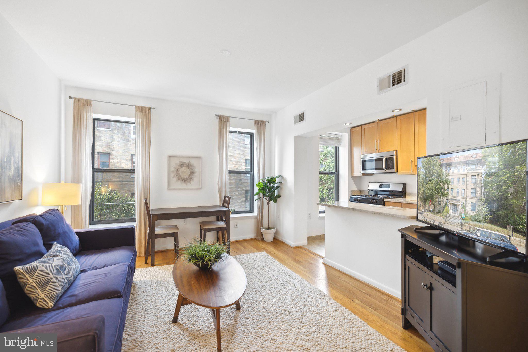 Don't miss this updated 1BR/1BA condo that's perfectly situated across from Walter Pierce Park and on the cusp of vibrant Adams Morgan! Unit #303 features a bright and open layout with a large welcoming foyer complete with a closet with built-in shelving and additional space that could be used as a home office or more storage. Past the foyer, you'll find your living and dining space that is flooded with natural light from the two large windows. The updated kitchen is conveniently located off the living room and features stylish track lighting, upgraded countertops, stainless appliances, and shaker cabinets. Down the hall, you'll find an additional closet for extra storage, the full bathroom with updated vanity, lighting, and tile, plus the spacious bedroom with nice closet space. The unit also features an in-unit LG W/D, hardwood floors throughout, and has been freshly painted! This pet-friendly building has a low monthly condo fee, is professionally managed, and has both onsite bike storage and additional laundry room. You'll love the prime location - across the street from Walter Pierce Park and dog park, plus you're within minutes to popular DC restaurants including The Line, Federalist Pig, Tail Up Goat, and many more. You'll also enjoy the convenience of having several coffee shops, bakeries, and Harris Teeter at your doorstep! You'll absolutely love it here, so schedule your showing today!