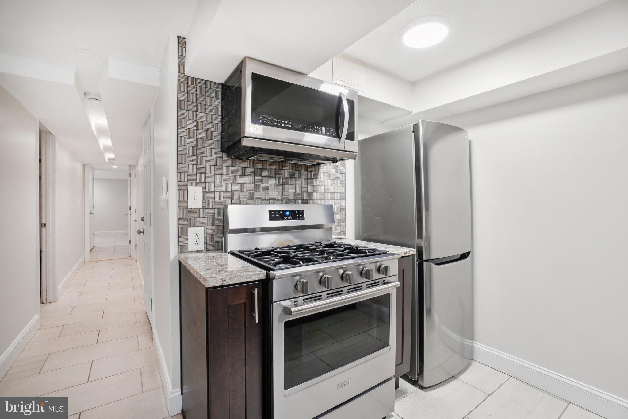 Gas Range, Gas Oven, Refrigerator, Dishwasher, Disposal, Stainless Steel Appliance(s), Washer/Dryer Stacked, Microwave, Tankless Water Heater